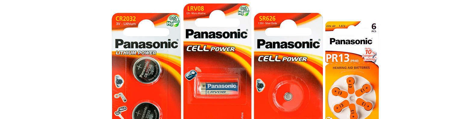 Bodegon con diferentes tipos de pilas especiales panasonic
