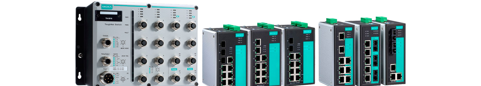 Bodegon con el avance un los Swicth Ethernet de Moxa que utlizamos en Tempel Group